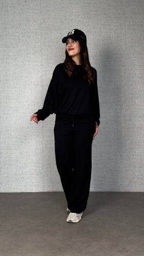 Kadın uzun kollu bisiklet yaka viskon iki iplik bluz ve pantolon ikili takım