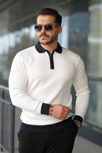 • Erkek kol ve yaka detaylı uzun kollu triko